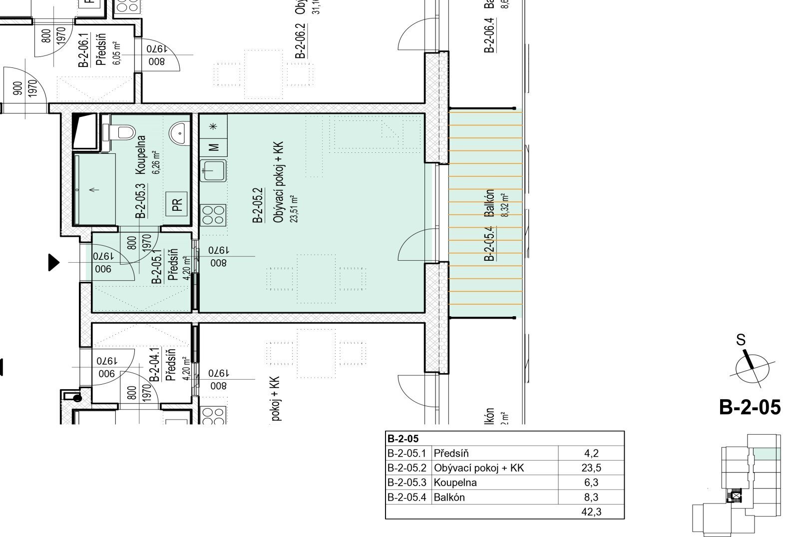 Byt 1+kk, 42,3 m2, 2. NP, budova B