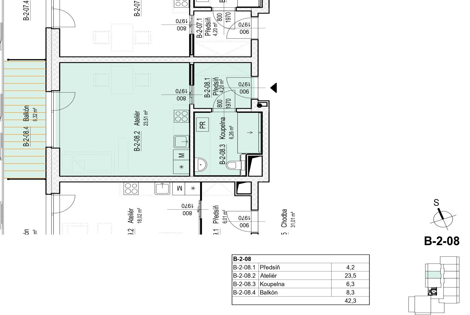 Byt 1+kk, 42,3 m2, 2. NP, budova B