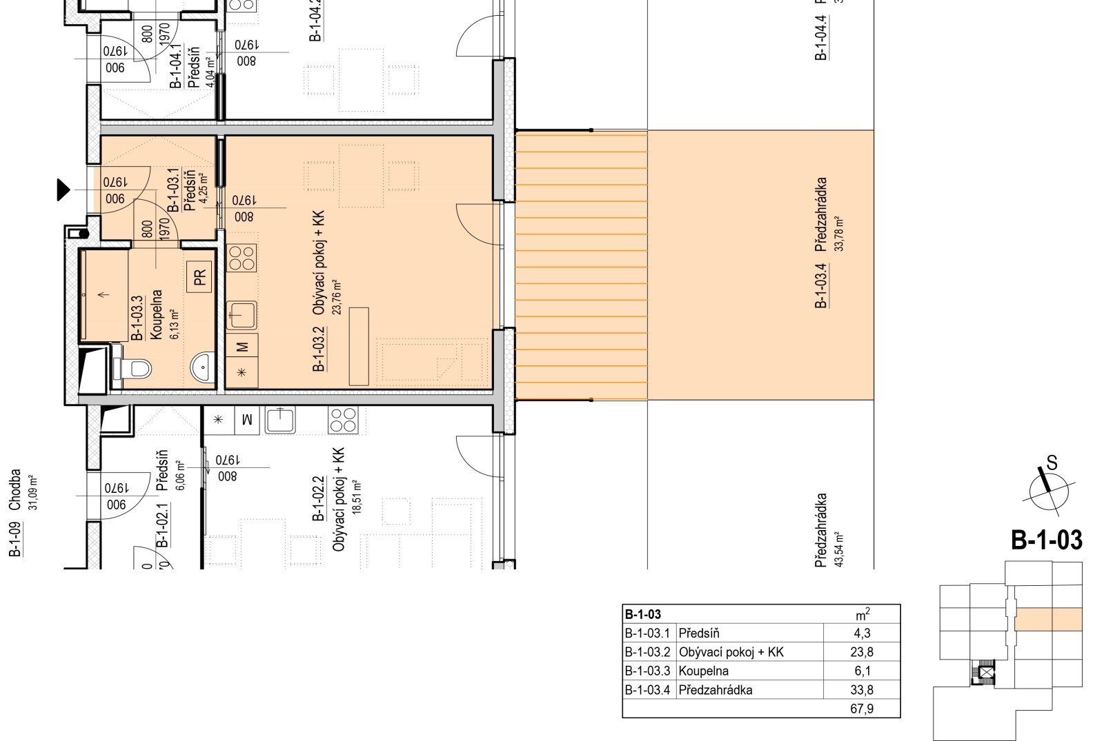 Byt 1+kk, 68,2 m2, 1. NP, budova B