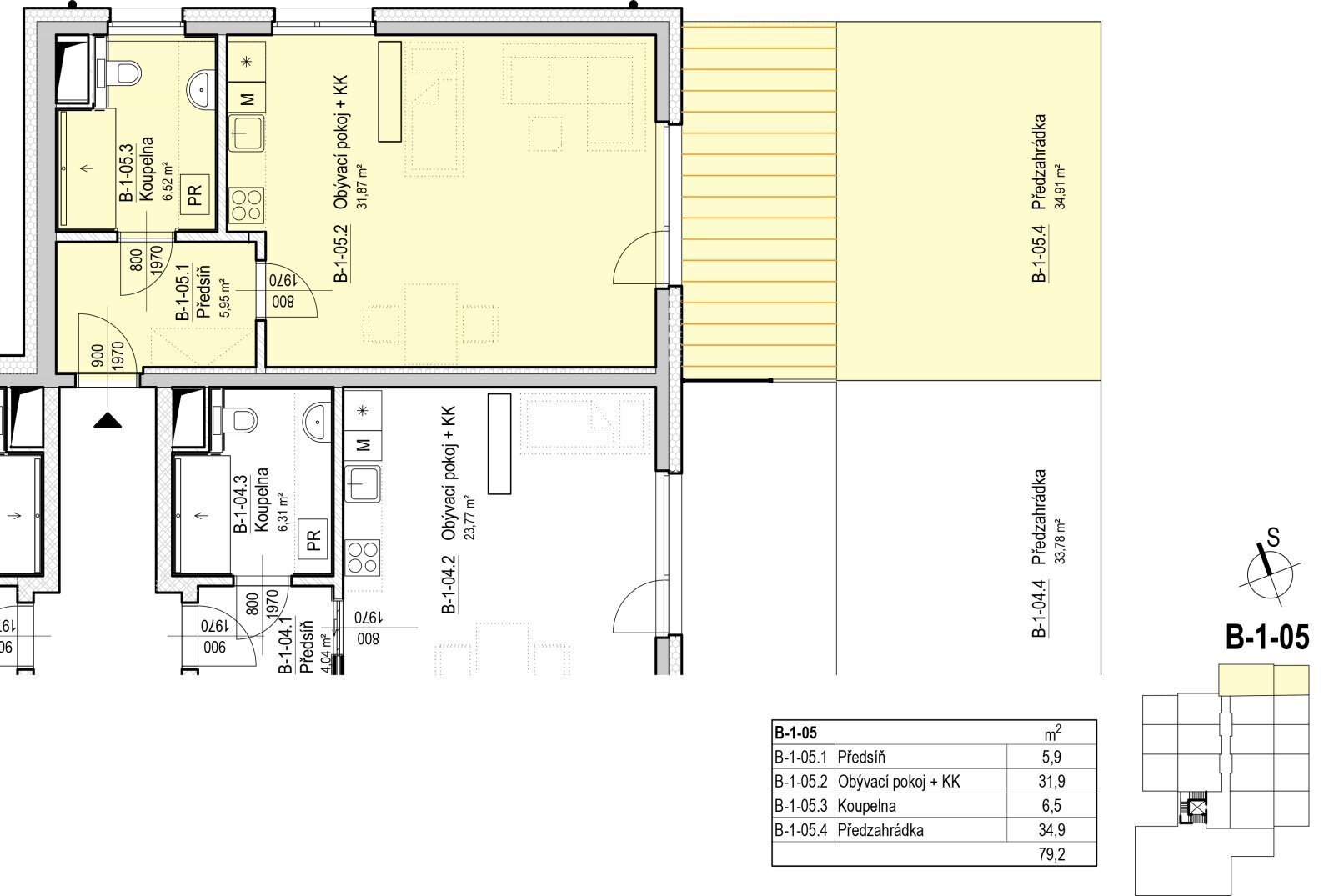 Byt 1+kk, 79,4 m2, 1. NP, budova B