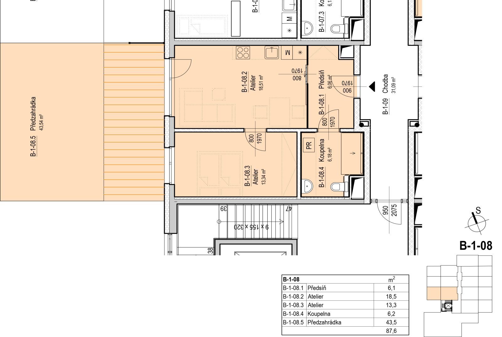 Byt 2+kk, 87,8 m2, 1. NP, budova B