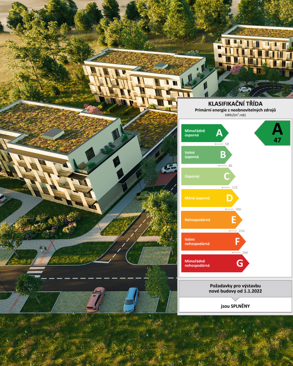 Všechny budovy dosahují energetické třídy A – mimořádně