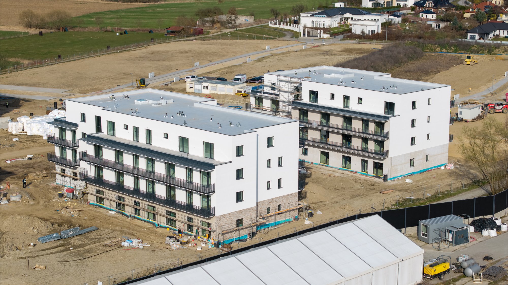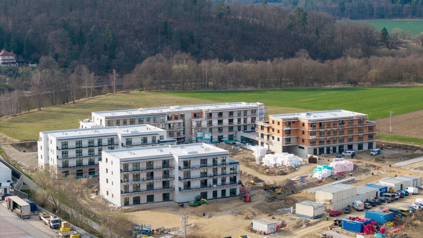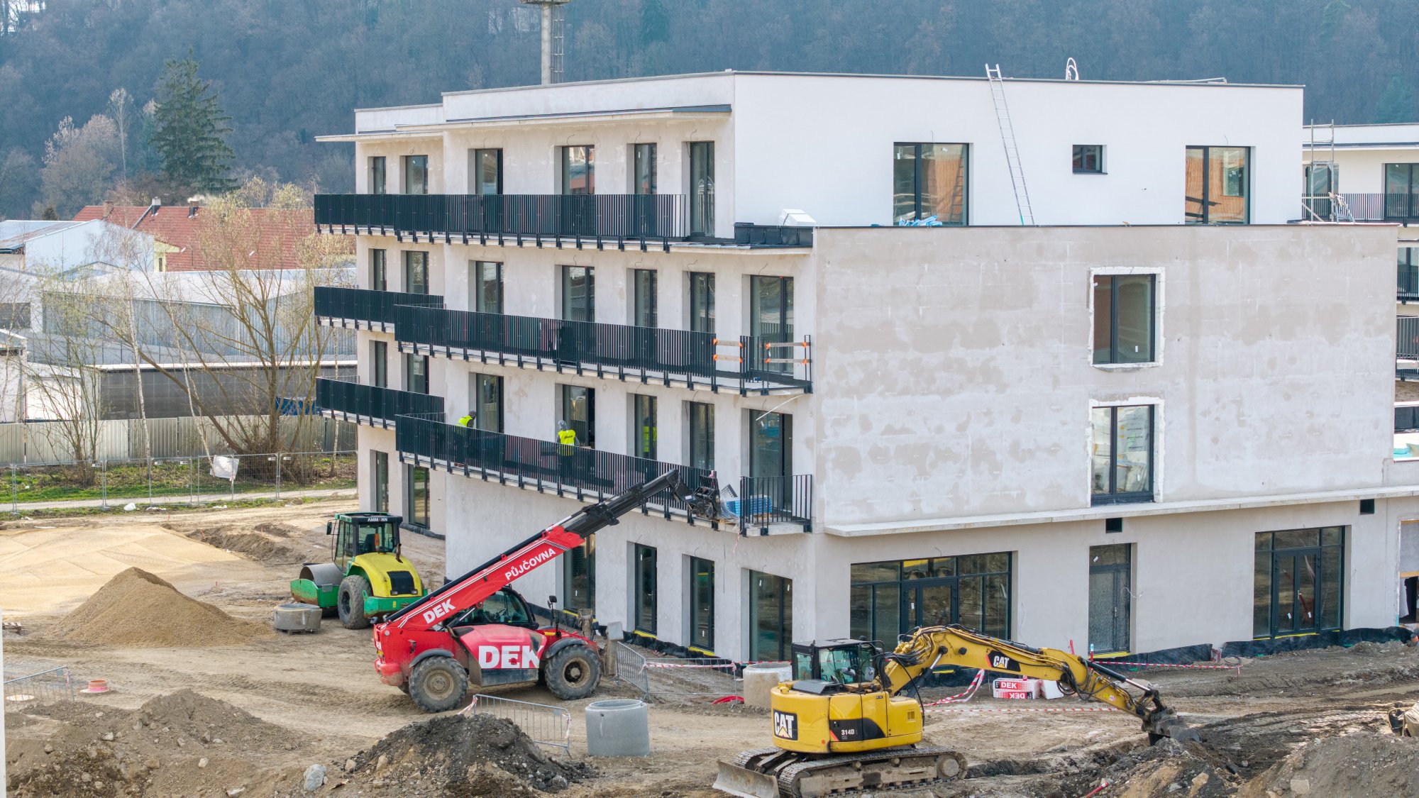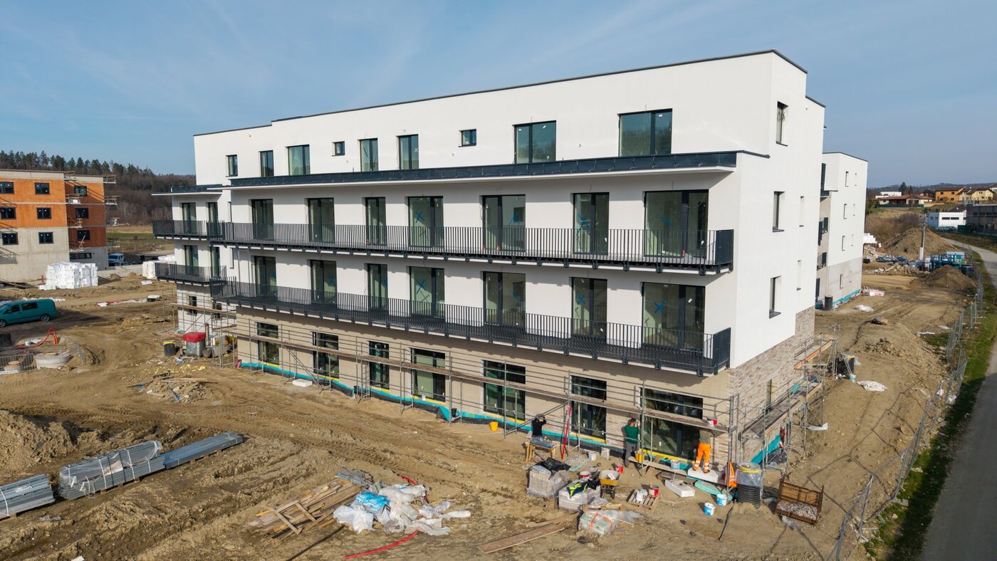 Aktuálně probíhají práce na fasádách, instalaci balkonových