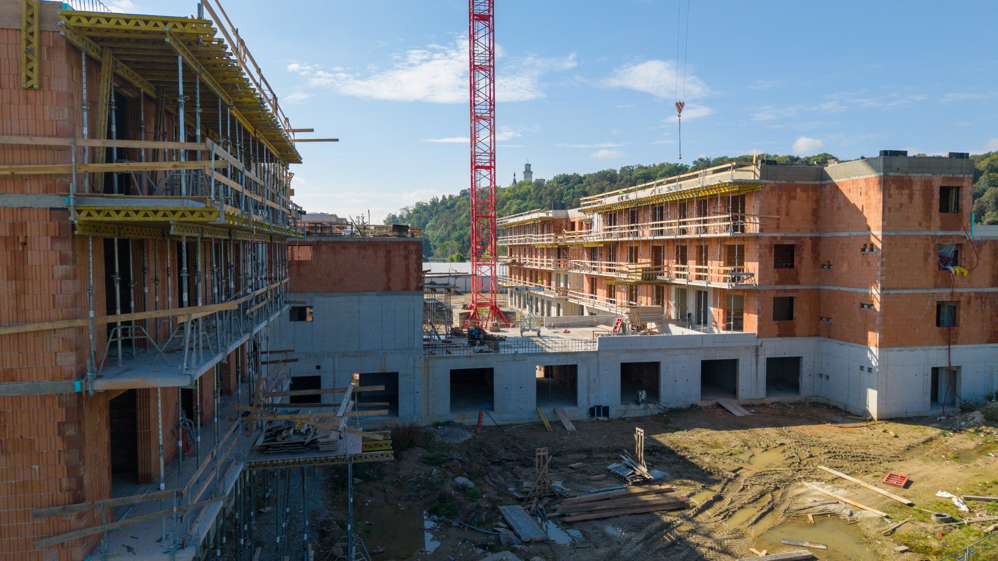 milník – hrubá stavba Senior Resortu Hluboká je