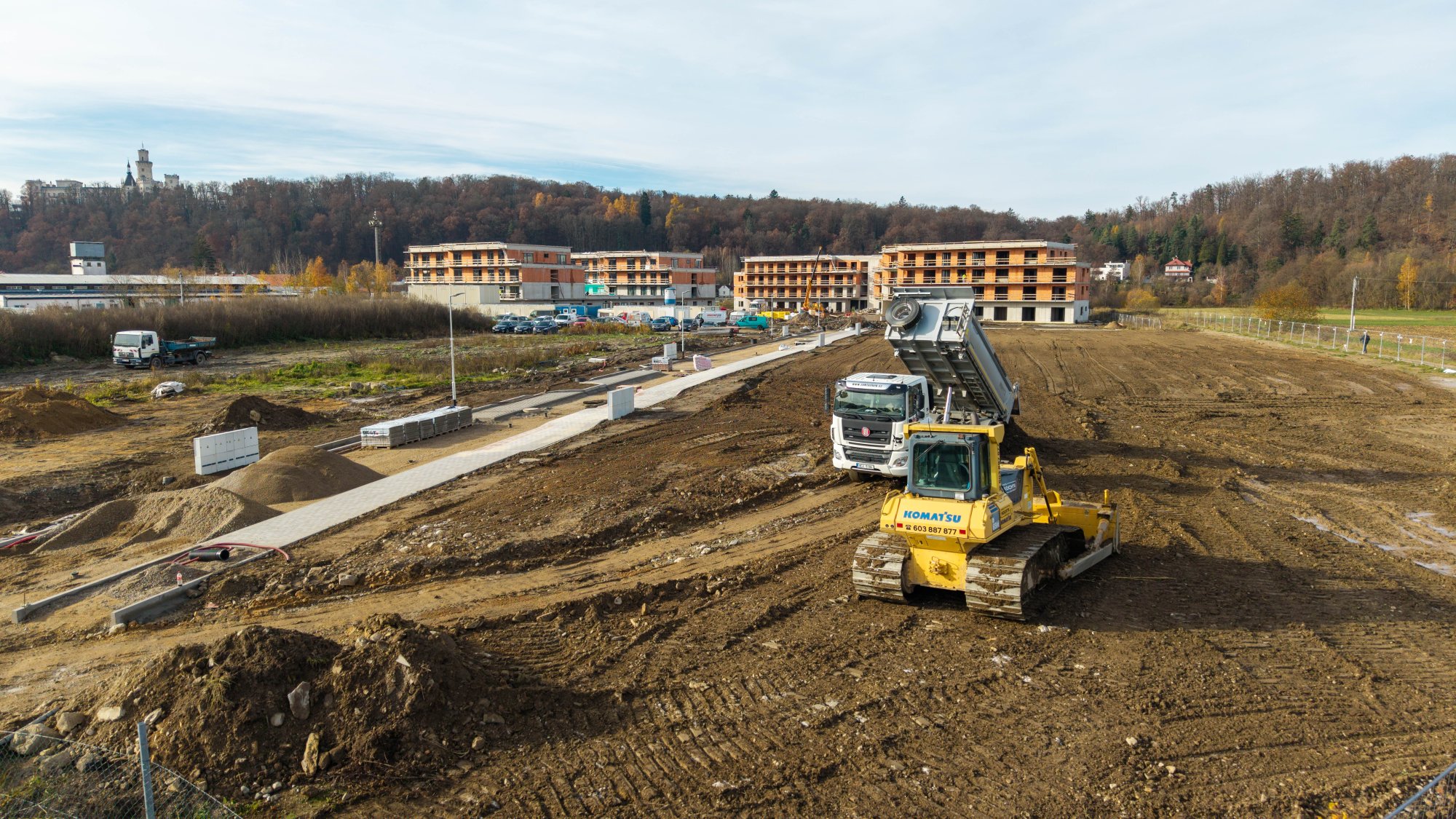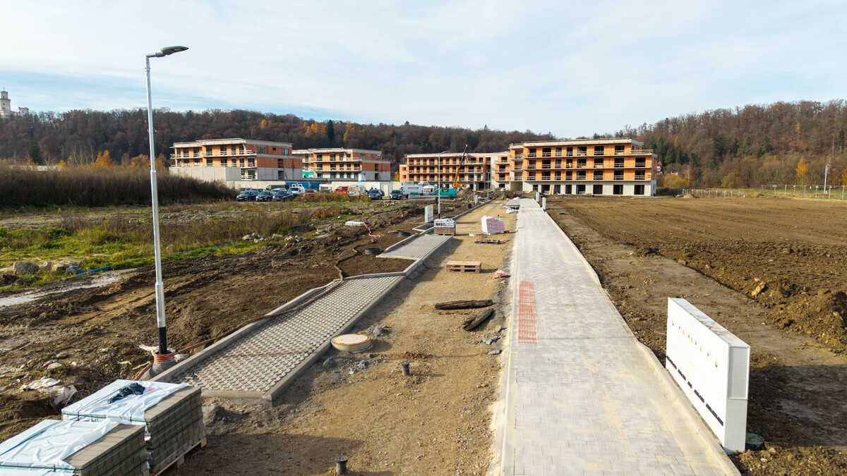 Vznikající cesty postupně propojují jednotlivé části areálu a